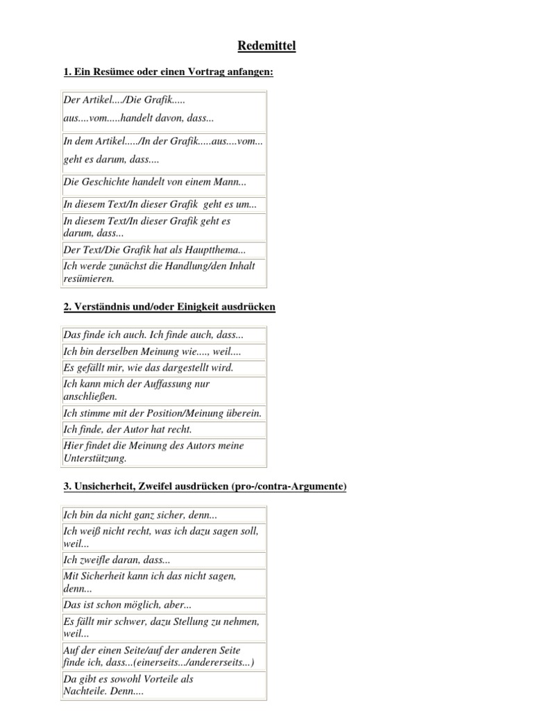 • das thema des nächsten vortrags lautet: Sie ermöglicht es ihnen, ihre artikel mit den wichtigsten konzepten zusammenzufassen und zu analysieren. Redemittel c1 ιανουαριου 30, 2011 giannis farmakis einige redemittel, die bei der c1 prüfung des goethe. • ich gehe (da) völlig „d'accord mit ihnen. Es ist sinnvoll, wenn die schülerinnen und schüler diejenigen ausdrücke